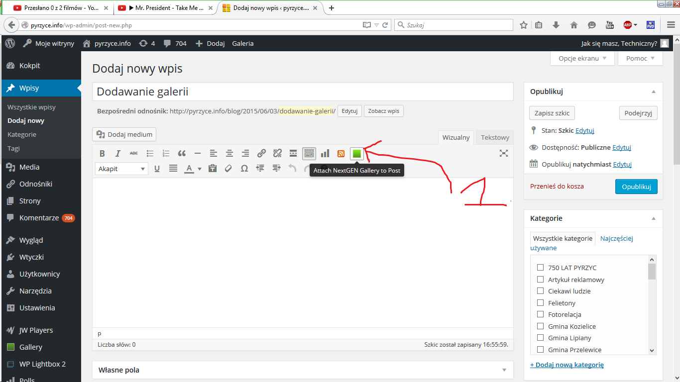 1. klikamy na dodaj galerię, zielona ikonka