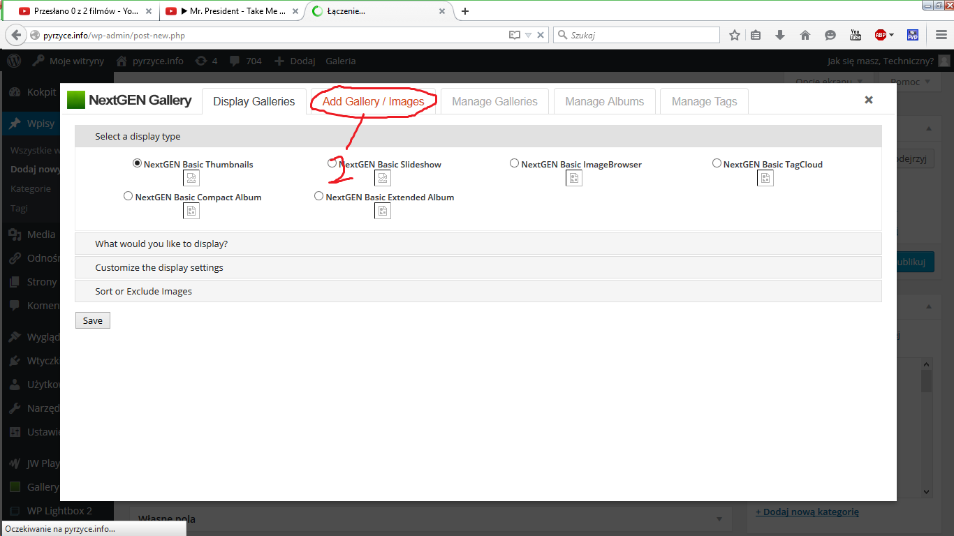 8. przechodzimy do zakładki Display Galleries