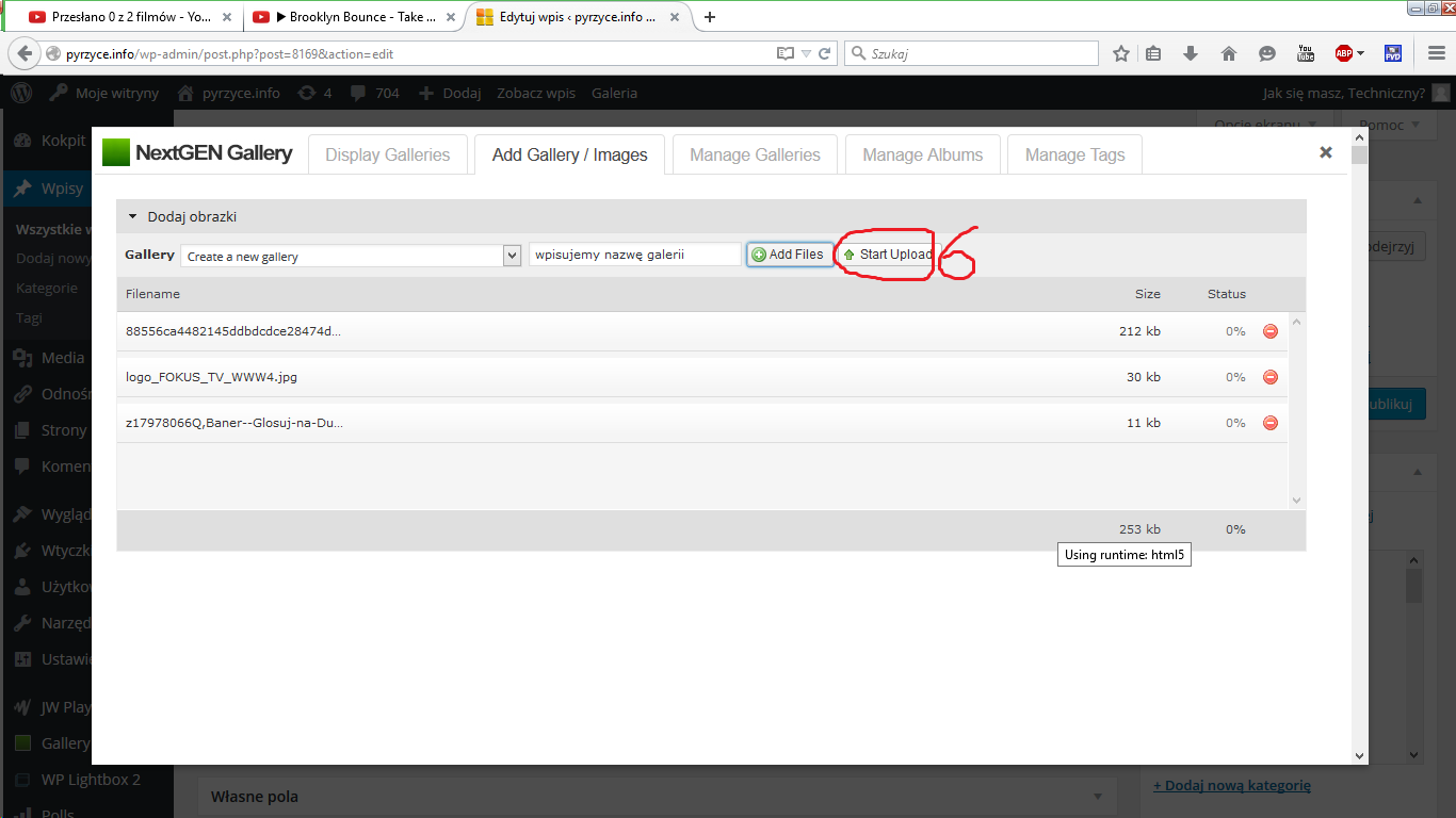 6. po upewnieniu się, że wszystkie pliki które chcemy dodać są na liście, klikamy Start Upload