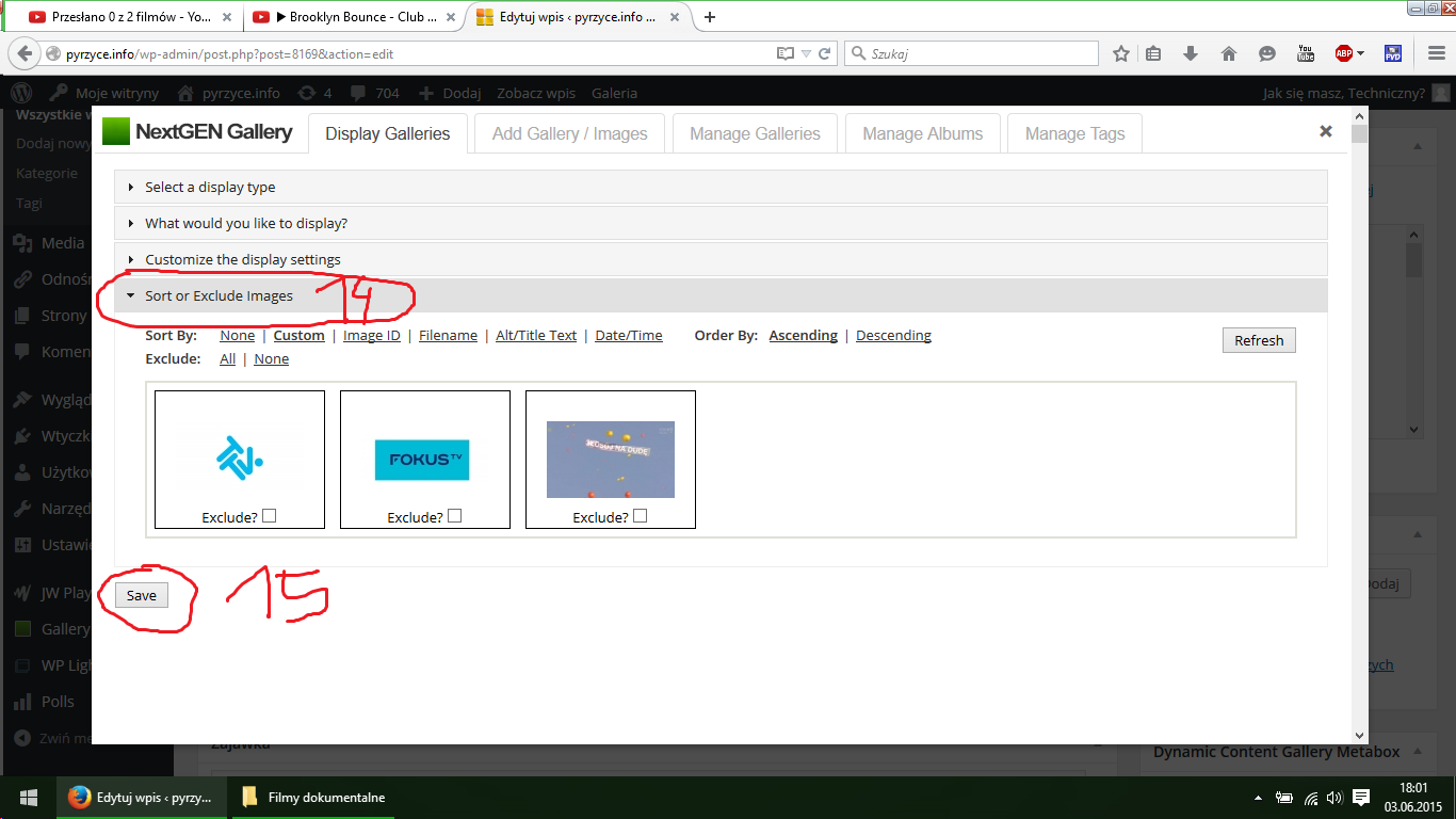 14. przechodzimy do kolejnej zakładki, gdzie możemy posortować zdjęcia, wybrać te które chemy wyświetlić, ustalić ich kolejność itp.